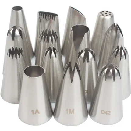 15pcs Piping Nozzles Set, Stainless Steel IcingCream Nozzles, Cake Piping Tips For Dessert Biscuit Cup Cake, Kitchen Accessories